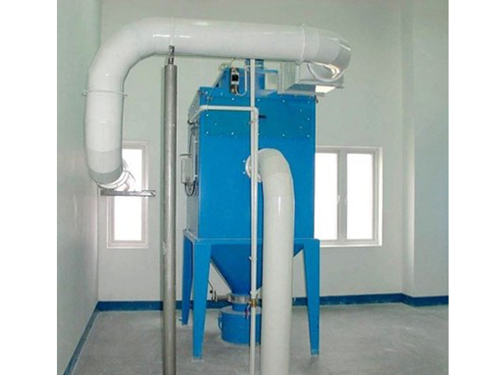 本產(chǎn)品室含塵氣體凈化的新型設(shè)備。它采用了適用于較高溫度和“208”工業(yè)滌綸絨布作濾袋,凈化效果高達99.5%。結(jié)構(gòu)緊湊、占地面積小、濾袋壽命長、運行穩(wěn)定可靠、維護保養(yǎng)方便、處理含塵氣體溫度可高達120℃。含塵氣流從氣口進入下箱體后,部分沉淀,輕微粉塵浮動時背濾袋阻留,凈化空氣透過濾袋,經(jīng)文氏管進入箱體,從出氣口排出。積附在濾袋外壁的粉塵不斷增加,當(dāng)阻力在規(guī)定的范圍內(nèi)(一般為80~120毫米水柱),就要清除積附在濾袋外壁的粉塵,清灰是由控制器順序觸發(fā)各控制閥,使氣包內(nèi)的噴吹管孔袋在一瞬間急劇膨脹并伴隨著氣流的反作用,抖落的粉塵落入灰門經(jīng)排灰閥排出機體。